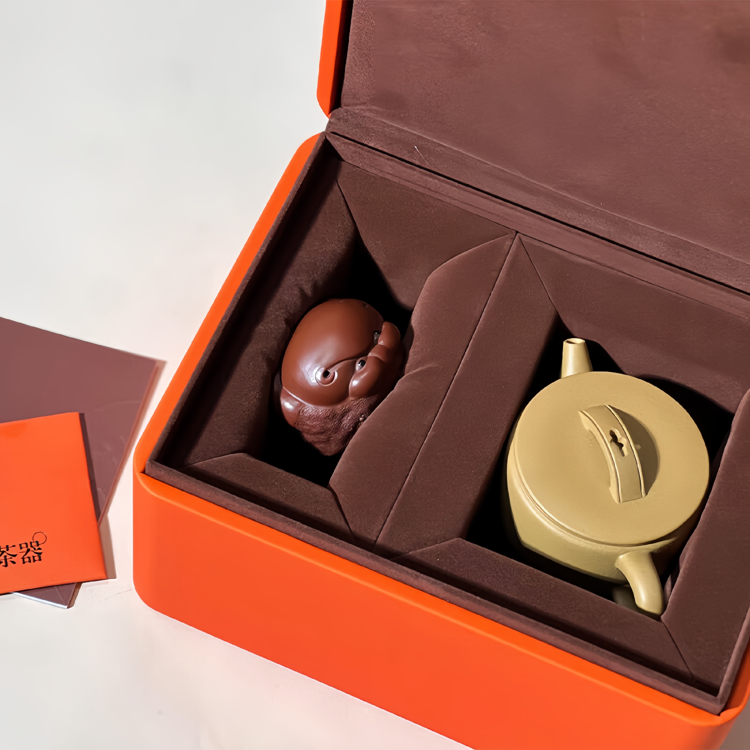 Accompanied by a symbolic tea pet and presented in a premium leather box with a certificate and carrying bag, this compact teaware set combines heritage craftsmanship with modern presentation—ideal for use, collection, or gifting.